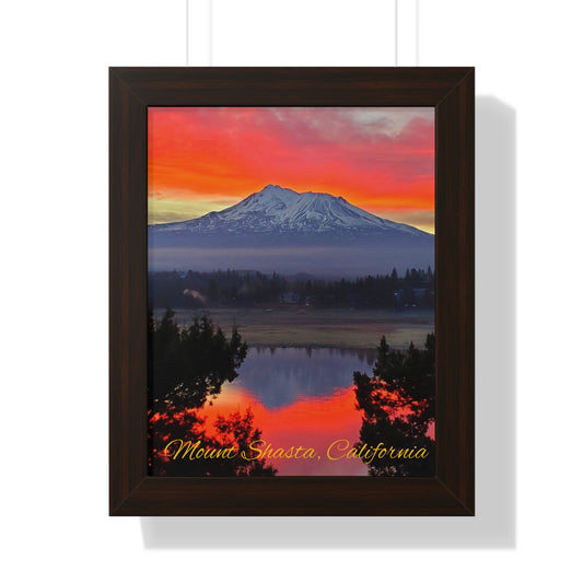 Mount Shasta Fiery Sunset Framed Vertical Poster