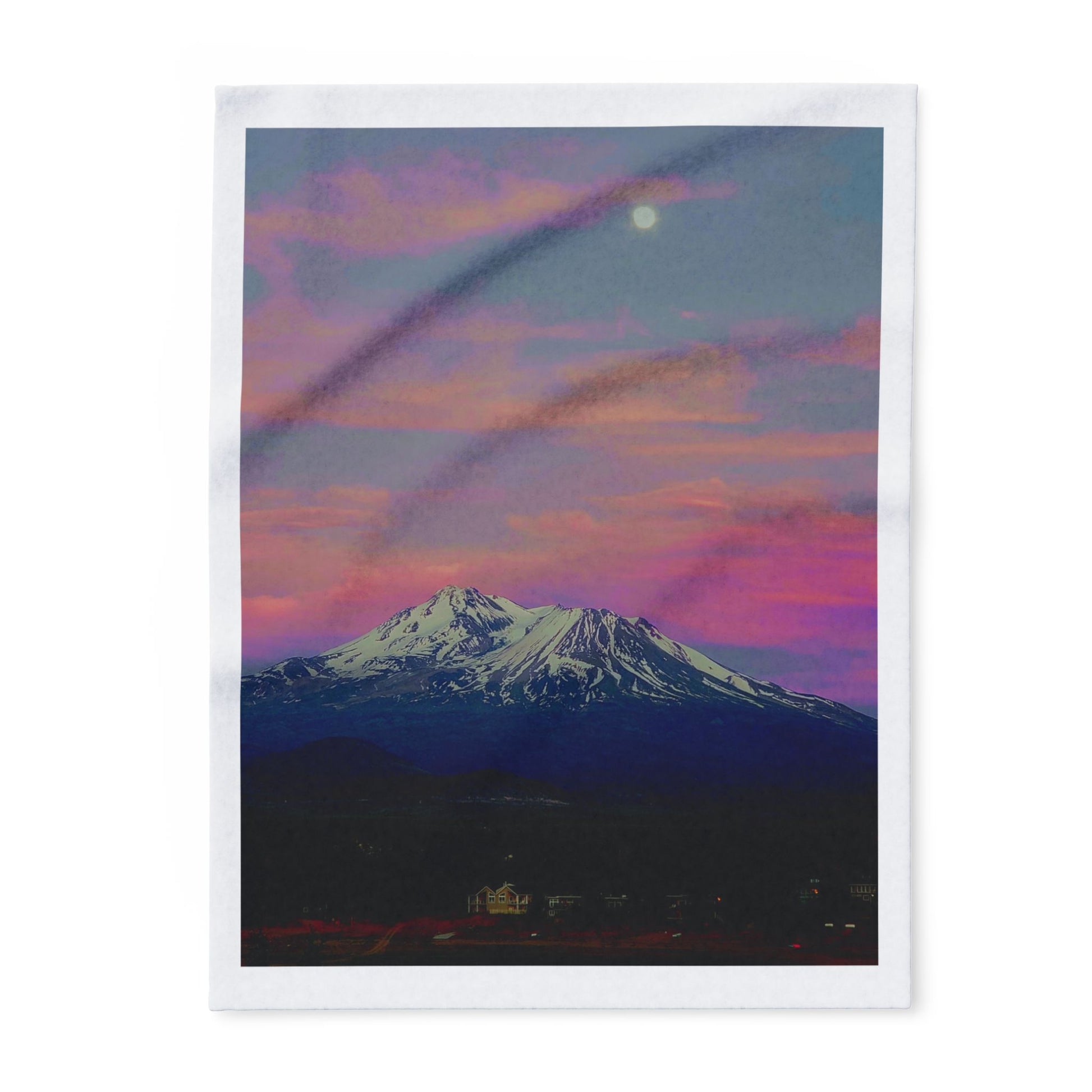 You can create the coziest of moments with this personalized fleece blanket of a blushing Mount Shasta. Available in 3 sizes to choose from, these blankets come with vibrant colors and brings Mount Shasta to life in great detail. Featuring the unique photography of local artist Dana Yates, get yours today! It would make a lovely Christmas or holiday gift!!