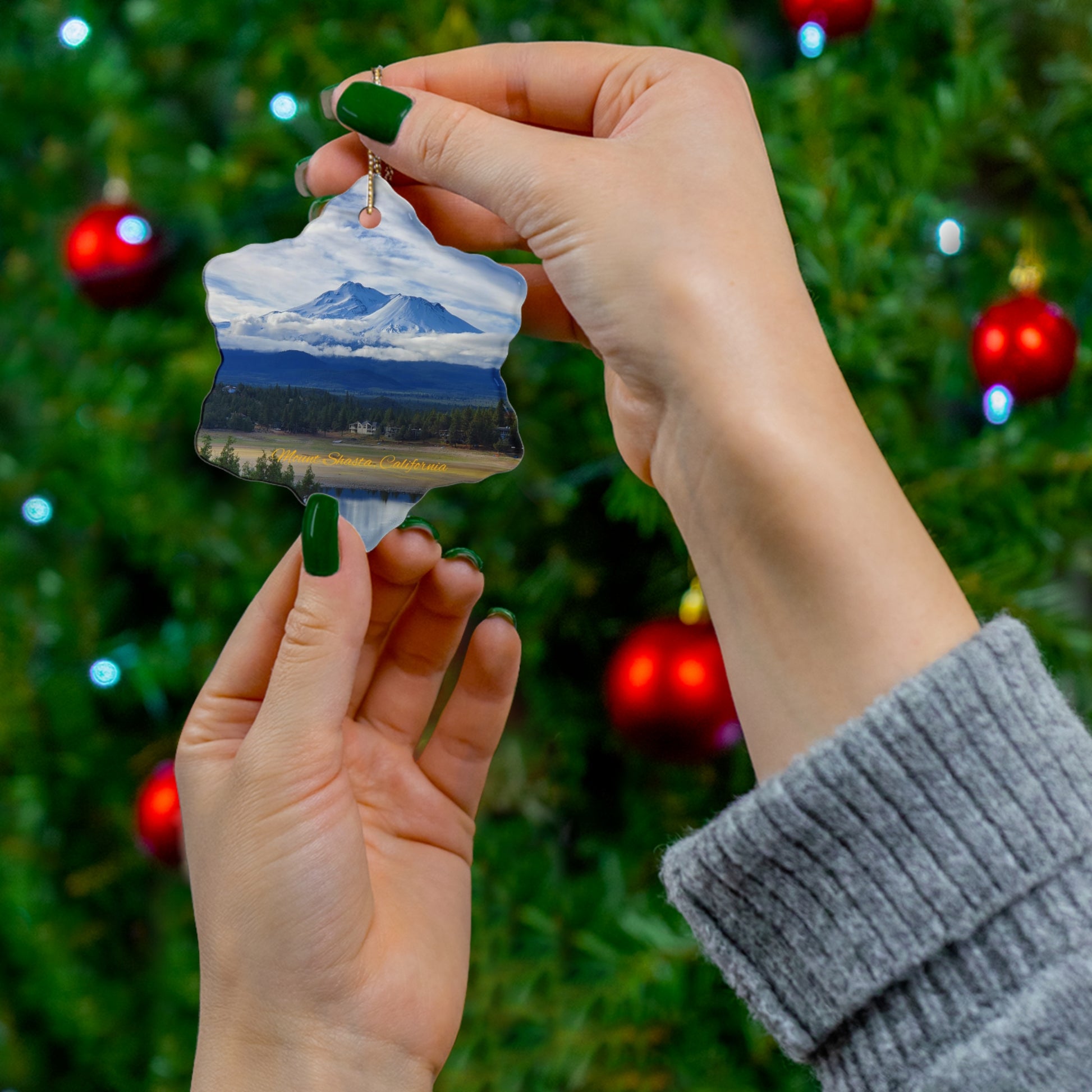 The Spirit of Mount Shasta Ceramic Christmas Ornament, 4 Shapes